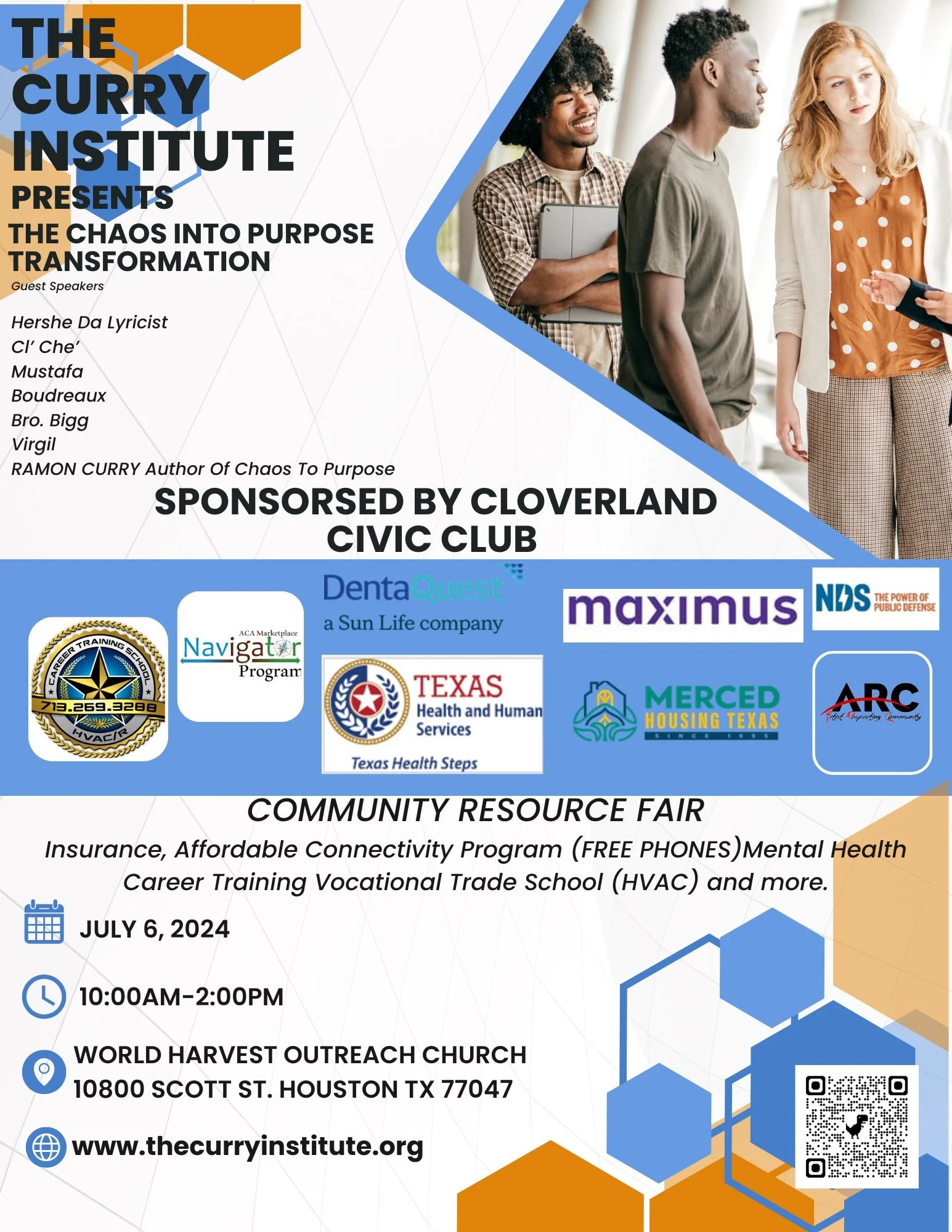 Jul 6 The Curry Institute "Community Resource Fair" Saturday, July 6, 2024 10:00 AM 2:00 PM World Harvest Outreach (map) Google Calendar ICS View Event →
